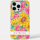 Passen Sie diese farbenfrohe moderne gelbe Sonnenblumen mit rosa Zinnien-Malerei iPhone 16 Pro Max Hülle mit Ihrem Namen in einer trendigen modernen CAP-Schrift in Rosa auf Weiß an. Es ist so schön und fröhlich!