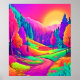 Ein farbenfroher Weg schlängelt sich bei Sonnenuntergang durch einen Wald, Sonnenlicht durchströmt die Bäume (dieses Design aus KI). Bestellen Sie noch heute und Embrace the Joy of Shopping!