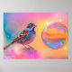 Farbige Sparrow und Regenbogenblase Poster
