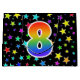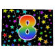 Dieses aufregende, lustige und lebendige Geschenktütendesign besticht durch zahlreiche farbenprächtige Sternenformen und die Zahl "8" mit einem farbenfrohen Regenbogen-inspirierten Farbverlaufsmuster auf schwarzem Hintergrund. Eine Geschenktasche wie diese könnte vielleicht eine lustige und glückliche Art sein, Geschenke oder Geschenke für jemanden zum achten Geburtstag, oder vielleicht für ein Paar zum achten Hochzeitstag, oder für ein anderes 8. Ereignis. [~Z0000347]