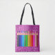 Überall in der Print-Tasche mit farbenfrohen Stiften und farbenfroher Gestaltung.