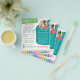 Marketing Flyer für einen Kunstlehrer personalisiert mit Ihrem Profil-Foto, und darüber, was Sie Ihren potenziellen Studierenden anbieten, und Kontaktinformationen. Fügen Sie eine kleine Galerie von Fotos auf der Rückseite hinzu, um Ihre Arbeit zu zeigen. Ein buntes und lustiges Design mit farbigen Stiften und Sternen in sanften und hellen Farben.