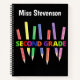 Beginnen Sie das neue Schuljahr mit diesem Notizbuch der zweiten Klasse, das sowohl von Lehrern als auch von Schülern genutzt werden kann. Das Design besteht aus 7 verschiedenen Farbstiften, die sich in verschiedenen Winkeln nebeneinander befinden, wobei das Wort "zweite Klasse" über sie verteilt ist. Dieses Notenbuch kann personalisiert werden, indem man den Namen darauf ändert, und würde ein großartiges Geschenk von hinten an die Schule machen.