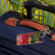 Machen Sie Ihr Gepäck auf einem Flughafenkarussell mit einzigartigen Tags auffallend! Dieses farbenprächtige Gepäckanhänger zeigt ein Bild eines zeitgenössischen abstrakten Stoffmusters in den wavy-psychedelischen Regenbogenfarben Rosa, Rot, Gelb, Orange, Grün, Blau, Braun, Lilve, lila und Türkis, die an die Palette eines Malers erinnern. Passen Sie den Text auf der Rückseite mit Ihren persönlichen Daten an.