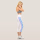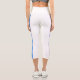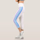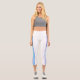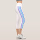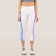 Hübsche Yoga-Capris-Leggings in Weiß, mit blauen, aqua- und lavenderfarbenen Streifen auf beiden Seiten der Leggings. Schöne Ergänzung zu unseren farbenfrohen Blume Yoga-Set.