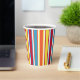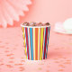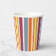Farbige Streifen orange, blau, gelb, rot, weiß Pappbecher