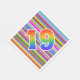 Dieses auffällige, lebendige und lustige Papier-Serviette-Design zeichnet sich durch ein farbenprächtiges Streifen-Muster aus, zusammen mit der Zahl "19" mit einem bunten, inspirierten Farbverlauf. Papierservietten wie diese können bei einer Feier zur Ehrung des neunzehnten Geburtstages von jemandem, vielleicht des neunzehnten Hochzeitstages eines Paares oder eines anderen 19. [~Z0000352]