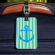 Mit diesem nautischen Gepäckanhänger können Sie Ihr Gepäck vom Terminal aus abstellen. Die Vorderseite des Anhängers ist in blau, grün und weiß gestreift, mit einem himmelblauen Anker. Die Rückseite des Tags ist ein solides Himmelblau, mit eigenem, weißem Text fertig, um sich zu personalisieren. Es stehen passende Reiseprodukte zur Verfügung.