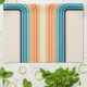 Die Arkaden im Retro-Stil sind farbenfroh (gelb, blau, orange, marineblau, beige, türkis) und auf beigem Hintergrund dekoriert. Sie können Ihren Namen/Monogramm hinzufügen, um das Objekt zu personalisieren.