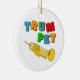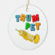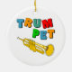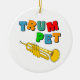 Eine Trompete mit bunten Texten ist ein lustiges Geschenkdesign für Trompetenmusiker, Schullehrer und Musikstudenten in Konzertjazz und Marching-Band.