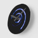 Die Wanduhr mit abstraktem Bild eines lila, schwarzen Kreisels auf der Vorderseite der Uhr. Anpassbar.