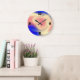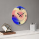 Die Uhr mit farbenfroher Hintergrundfarbe.