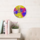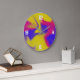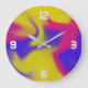 Die Uhr mit farbenfroher Hintergrundfarbe.