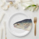 Stilvolle, farbenfrohe Lachsmaschine aus dem 19. Jahrhundert. Das Bild bietet einen seitlichen Blick auf einen Lachs mit schönen blauen, roten, grünen und gelben Farbtönen und einer kleinen Muschel, um die Größe zu verdeutlichen. Saubere, um jedes Objekt in einer stilvollen und modernen Art zu dekorieren. Fügen Sie Ihren eigenen Text zu diesem herrlichen Viktorianischen Fisch, wenn Sie möchten oder einfach nur genießen Sie die detaillierte Wildtierfarbkunst.