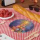Farbige Weihnachtsbaumlichter Aquarell Pappteller