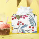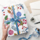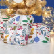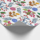 Weihnachtssymbole in einem nahtlosen Muster mit weißem Hintergrund. Farbenfrohe Ornamente und grüne Heilige.