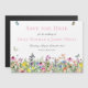 Diese Save the Date Bohemische, moderne und sommerliche Magnetkarte besticht durch ein farbenfrohes Feld von Wildblumen mit Schmetterlingen, Hummeln und Ladybugs. Sie können alle Text- und Grafikplatzierungsdetails an Ihre spezifischen Anforderungen anpassen.