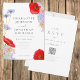 Schöne farbenfrohe Wildblume Aquarell boho QR Code Hochzeitseinladung mit eleganten grauen Typografie-Skript und UAWG QR-Code und Hochzeitswebsite Details auf der Rückseite der Einladung. Im Frühling und im Sommer finden Sie Blumenbilder mit feurigen roten Mohnblüten in Pastellfarben, blauen und lila Maisblumen, pfirsichblau und pink vergessen mich Noten und Kosmos und grünes zartes Blattwerk. Original-Kunstwerk von Catherine Sweetman