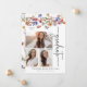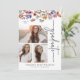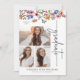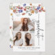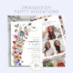 Farbige Wildblumen Foto Abschluss Ankündigung. Teilen Sie den Meilenstein Ihres Absolventen mit dieser wunderschön gestalteten Ankündigung mit einer dreiteiligen FrontCollage, die von skurrilen, handbemalten Wildblumen in dunkelblau, hellrosa, rot-weiß, goldgelb, kräftig rot und schlaugrün gerahmt ist. Das rustikale Muster des Rückens Krawatte das Design nahtlos zusammen. Personalisieren Sie die Botschaft, die Farben und den Hintergrund, um einen Sake zu schaffen, der die einzigartige Reise Ihres Absolventen widerspiegelt - lassen Sie jedes Detail zählen!