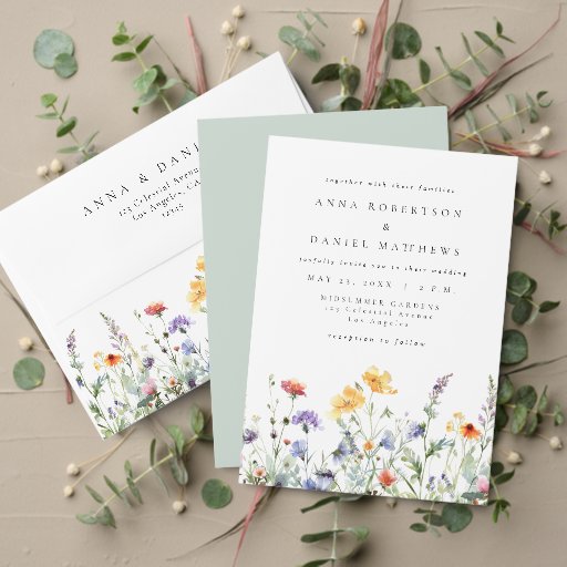 Farbige Wildblumen-Hochzeit Acryleinladungen