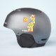 Fröhliche Abbildung einer niedlichen Cartoon-Giraffe mit mehrfarbigen Flecken und Initial.