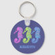 Schenken Sie Seepferd-Fans oder ein Gastgeschenk zum Thema Fisch, das sich perfekt für Ihre Unterwasserveranstaltung oder Ihr Party am Strand eignet. In diesem Schlüsselanhänger werden drei niedliche Seepferde im Cartoon-Stil in Orchideen lila, Kalkgrün und Hellblau dargestellt, und Ihr Name oder eine andere Nachricht wird unten angezeigt, um das gesamte Set auf einem dunkelmarineblau-blauen Hintergrund zu koordinieren. Dieser Schlüsselanhänger macht auch einen lustigen Rucksack-Dangler.