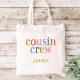 Tragen Sie den Spaß mit unseren passenden Familientote-Taschen mit einer niedlichen mehrfarbigen "Cousin Crew"-Textgrafik in spielerischen Retro-Farben, personalisiert mit dem Namen Ihres Kindes. Diese stilvollen und funktionalen Taschen sind ideal für Familienausflüge, Strandausflüge oder den Alltag, um die besondere Bindung zwischen Cousins in einer farbenfrohen Art und Weise zu feiern!