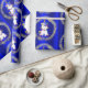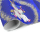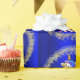 Ein Einhornverpackungspapier mit einem niedlichen Regenbogenmuster verziert die Ohren und sitzt in einem goldenen Kreis aus Glitzer, das ganze Set vor einem hübschen königsblauen Hintergrund. Dieses Verpackungspapier wäre eine ideale Verpackung für ein Party mit einem unverwechselbarem Motiv, ein Einhorn-Srapbook oder nur für die Dekoration eines kleinen Mädchenzimmers. Den Möglichkeiten sind keine Grenzen gesetzt!