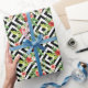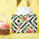 Farbiger Hibiskus mit schwarzgeometrischem Hinterg Geschenkpapier
