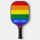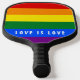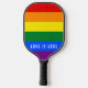 Farbiger LGBT-Regenbogen-Gay Pride-Flag mit benutz Pickleball Schläger