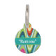 Passen Sie dieses farbenfrohe, abstrakte Design Tier ID Tag mit dem Namen Ihres Haustieres und QR Code Information Text auf der Rückseite an. Ersetzen Sie das QR-Codebeispiel durch Ihr eigenes. Es gibt viele Seiten im Web, auf denen Sie Ihren eigenen QR Code erstellen können. Sollte Ihr Haustier verloren sein, kann jemand ganz einfach Ihre Kontaktdaten haben.