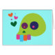 Diese farbenfrohe und trendige Skull-Abbildung zeigt einen niedlichen grünen Cartoon-Schädel mit schwimmenden Herzen und rosa, orange, lila und blau! Diese Indie-Vektorgrafik-Illustration ist das ideale Geschenk für jeden, der eine Liebe für sprichwörtliche, niedliche und leicht dunkle, aber helle und lebendige Kunstwerke hat!