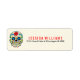 Coole Retro-Blume und Herzen Zucker Schädel 2 mit rote Rosen und blauen Diamanten. Hellbeige Dämme mit benutzerdefinierbarem Text