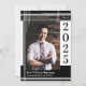 Feiern Sie Ihren Absolvent mit dieser White & Black School Farben Abschluss Ankündigung mit modernem kariertem Design! Das einfache moderne Design mit sauberer Typografie ist raffiniert und elegant mit sauberem Design. Ideal für eine High School, 8. Klasse oder Uni-Abschluss!