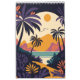 Farbenfroher Sonnenuntergang auf ozeanischem Hintergrund in flacher Farbe