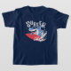 Spaß Surfen Shirt Kinder wird Liebe. Es hat einen blauen Hai mit einem roten Surfbrett. Ein tolles Shirt für die Liebhaber der Wellen und des Strandes. Viele Farben, aus denen Sie auswählen können