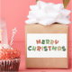 Modernes, schlichtes, buntes saisonales Design. Frohe Weihnachten und Happy New Year Aufkleber.