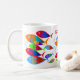 Wenn Sie ein buntes Zeug suchen, das Ihre Zuhause aufhellt, dann könnte es das sein! Fügen Sie Ihrem Tag einen Farbtupfer hinzu, mit dieser Tasse, die Spaß beim Fischdesign macht.