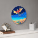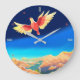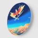 Farbiger Vogel über den Bergen Große Wanduhr