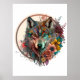Farbiger Wolf mit Blume Poster