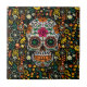 Farbiger Zuckerschädel mit Retro-Blume Hintergrund Fliese
