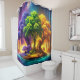 Dieser Duschvorhang hat ein farbenfrohes Baumdesign.