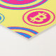 Dieses auffällige Bild zeigt ein sich wiederholendes Muster mit dem Wort "BITCOIN" und dem Bitcoin-Symbol (ein stilisiertes "B" mit zwei vertikalen Linien durch es) in verschiedenen Farben. Set auf hellgelbem Hintergrund, die Bitcoin-Symbole und -Texte sind in blauen, rosa und gelben Kreisen dargestellt. Die diagonale Anordnung der Elemente schafft ein visuell auffallendes und farbenfrohes Design, das dieses Muster perfekt für den Einsatz in Wallpaper, Werbematerialien oder Warendesigns macht und die beliebte Kryptowährung Bitcoin feiert.