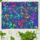 Dekoratives Bootankermuster in vielen Farben, Größen und Winkeln. Küchenhandtücher nach Maß. Blauer Hintergrund. Für Zuhause und Business-Dekoration. Geschenke Idee für Menschen, die Liebe des Meeres und des Fischens.