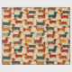 Fröhliche Dackel, gekleidet in farbenfrohen Pullovern, paradieren über einen warmen cremefarbenen Hintergrund in diesem skurrilen, von der Volkskunst inspirierten Muster. Ideales Geschenkpapier für Dackelbesitzer, Wiener-Hund-Fans und alle, die glauben, dass Hunde bessere Mode verdienen.