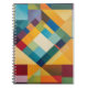 Ein lebendiges abstraktes Design mit mehrschichtigen Quadraten und Diamanten in reichen Tönen von Blau, Gelb, Rot und Grün - ideal für kreative, moderne Schreibwarenliebhaber.