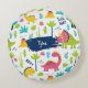 Farbiges Dinosaurier-Muster mit Kindernamen Rundes Kissen