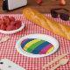 Ein buntes Ei mit einer Farbpalette. Dieses Design wirkt auf diese Paper-Teller sehr effektiv