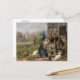 Eine Postkarte mit der Landschaftsmalerei, Buntes Federvieh (1901), von Carl Jutz (1838-1916), einem geborenen deutschen Künstler. Er war bekannt für seine Gemälde über Landschaften, Stillleben und Naturwissenschaften. Die Szene stellt einen Barnyard mit Pfau, Hahn, Truthühner und einer Stockente dar.