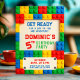 Dieses bunte und fröhliche Geburtstagsgeschenk mit einem hellen Gebäude (Backstein)-Design in Rot, Gelb, Blau und Grün, ideal für Kinder, die Spielzeug Liebe. Ideal für die Geburtstagsfeier eines Jungen oder Mädchens, aber leicht anpassbar für jedes Alter. Personalisieren Sie mit dem Namen, dem Party, der Uhrzeit und den UAWG Ihres Kindes, um eine Einladung zu schaffen, die den Ton für einen Tag voller Spaß und Abenteuer Set!